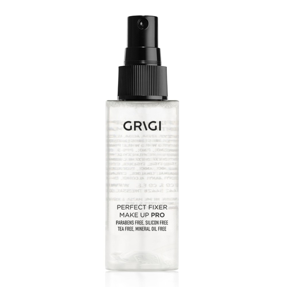 GRIGI PERFECT FIXER MAKE UP PRO. Προϊόν στερέωσης μακιγιάζ σε μορφή  spray, θα επεκτείνει την ανθεκτικότητα του μακιγιάζ και θα το κρατήσει αναλλοίωτο κατά την διάρκεια της ημέρας. Το σταθεροποιητικό spray μπορεί να εφαρμοστεί απευθείας μετά το μακιγιάζ η’ κατά την διάρκεια της ημέρας αναζωογονώντας το make up. Δρα σαν μια αόρατη προστατευτική μεμβράνη που θα παρατείνει τη διάρκεια του μακιγιάζ έως και 12ωρες. Δεν είναι αλκοολούχο οπότε δεν στεγνώνει το δέρμα. Προϊόν νέας τεχνολογίας, με βάση τα επιλεγμένα ενεργά συστατικά προσφέρει τέλεια προστασία στο δέρμα από την ρύπανση και τις γενικότερες επιπτώσεις του εξωτερικού περιβάλλοντος όπως την ζέστη, υγρασία και ιδρώτα. Εφαρμογή: Αμέσως μόλις ολοκληρώσετε το μακιγιάζ, ψεκάζετε με γρήγορες και κυκλικές κινήσεις σε απόσταση περίπου 25 – 30 εκ. από το πρόσωπο.  Στεγνώνει σε λίγα μόλις δευτερόλεπτα.